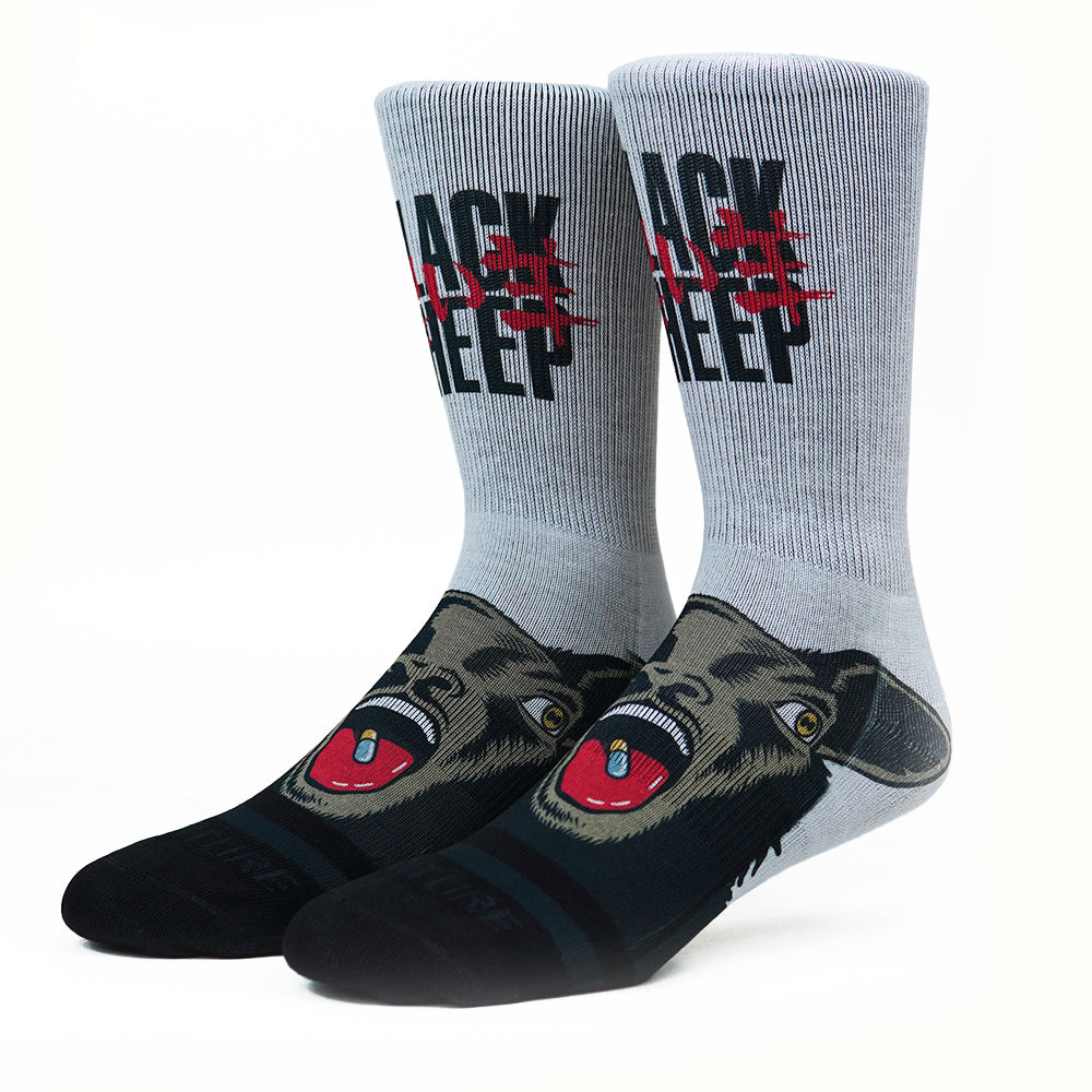 Limited Edtion Black Sheep Collab with Venture Socks featuring Jon Horner Artwork with a nod in sheep form to iconic manga film Akira.